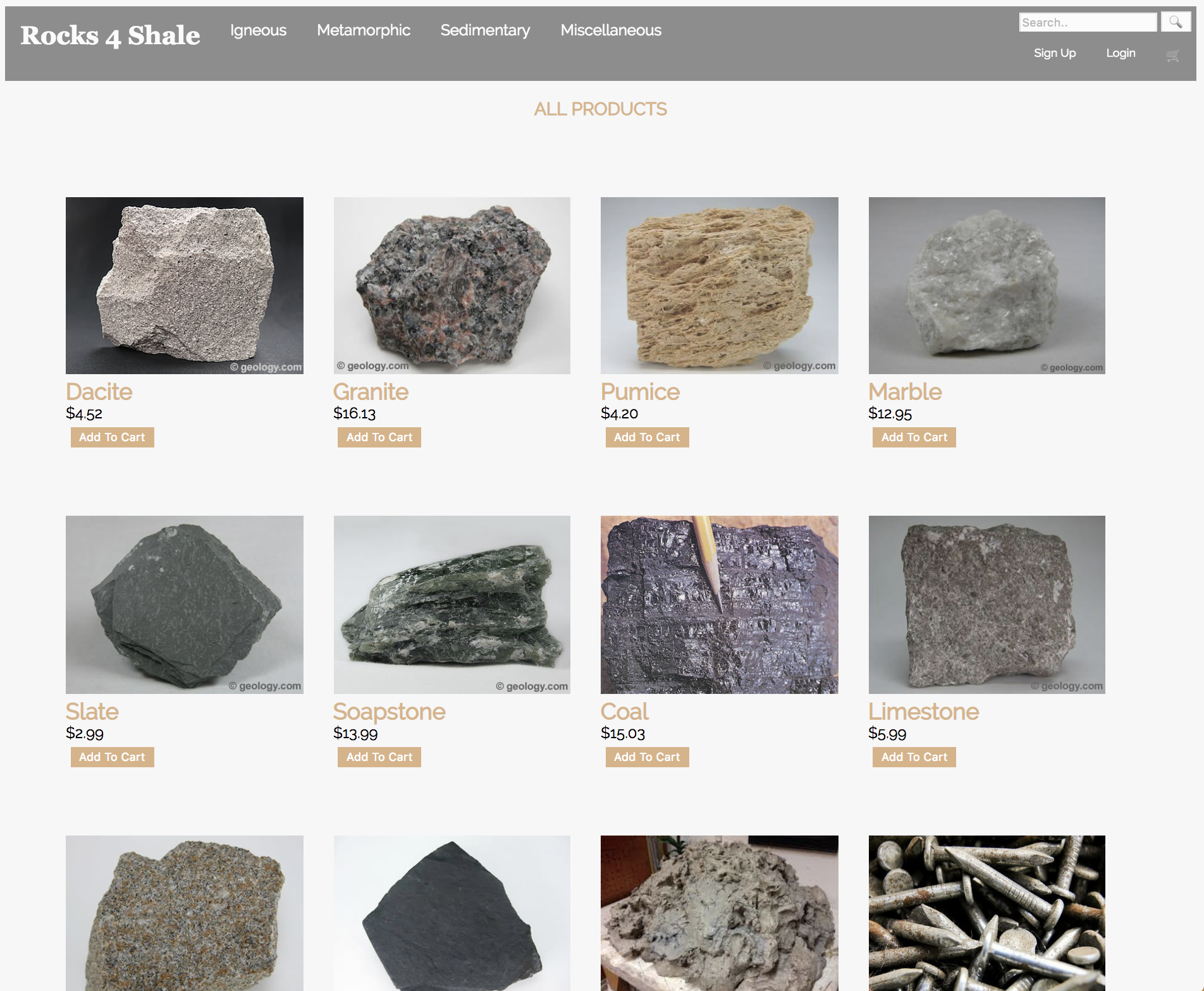 E-commerce website for purchasing rocks, built from the ground up